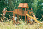 Подходит как для самых маленьких, так и для подростков. Здесь есть качели и мостик, скалодром, башня и корма корабля, горка и турник с большим рукоходом!
